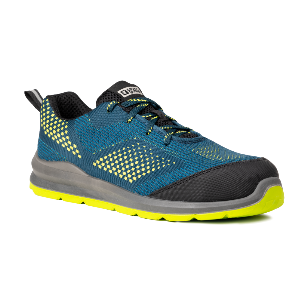• Design moderne bleu, vert et jaune, inspiré des chaussures de sport